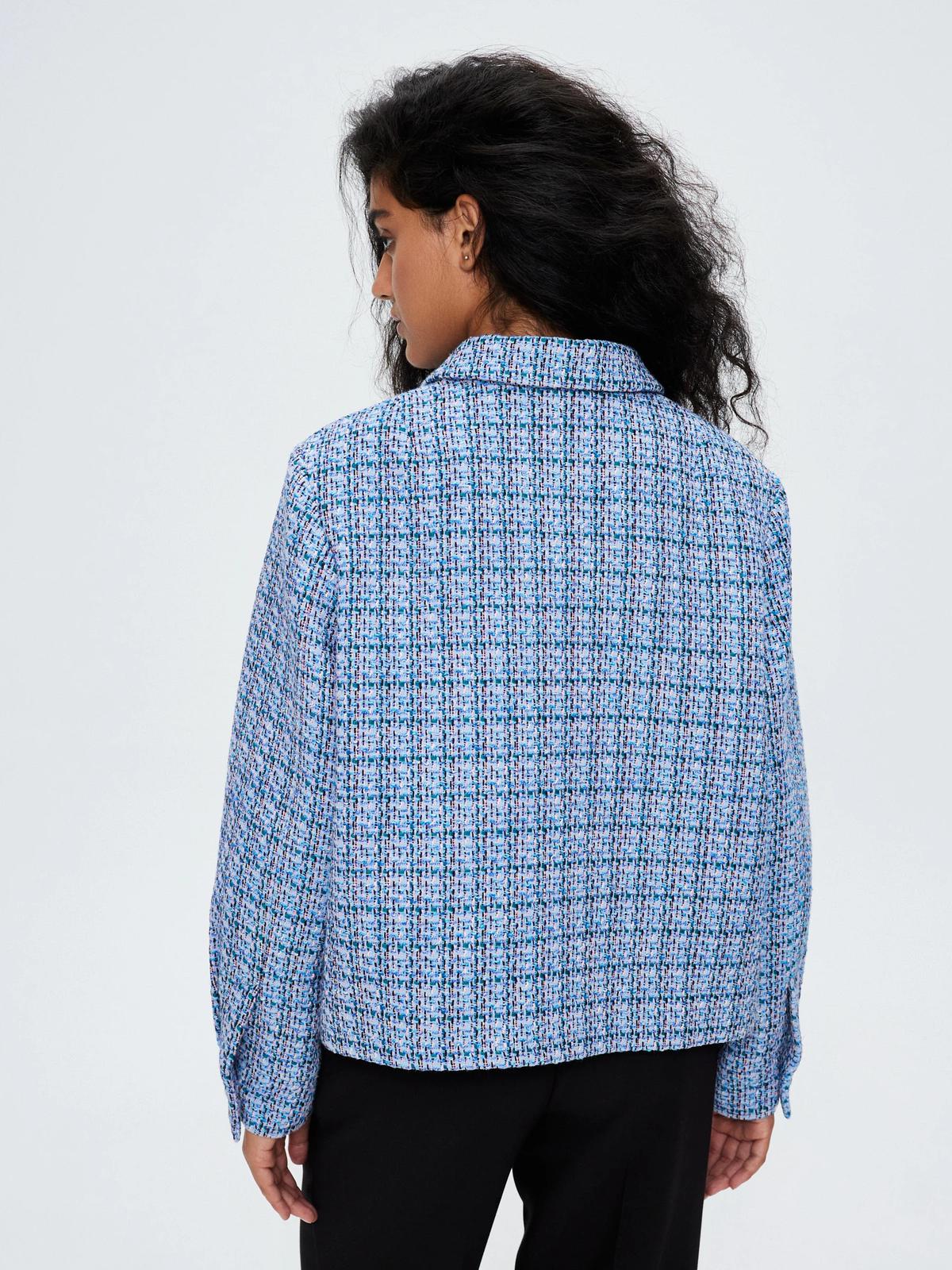 Твидовый жакет, который заменит джинсовую куртку и сделает наряднее любой образ. Жакет с рубашечным воротником и двумя накладными карманами сшит из фактурного твида турецкого производства. Детали: — манжеты на пуговицах; — крой свободный; — твид средне-плотного плетения; — нежно-голубое полотно с розовыми вкраплениями.
